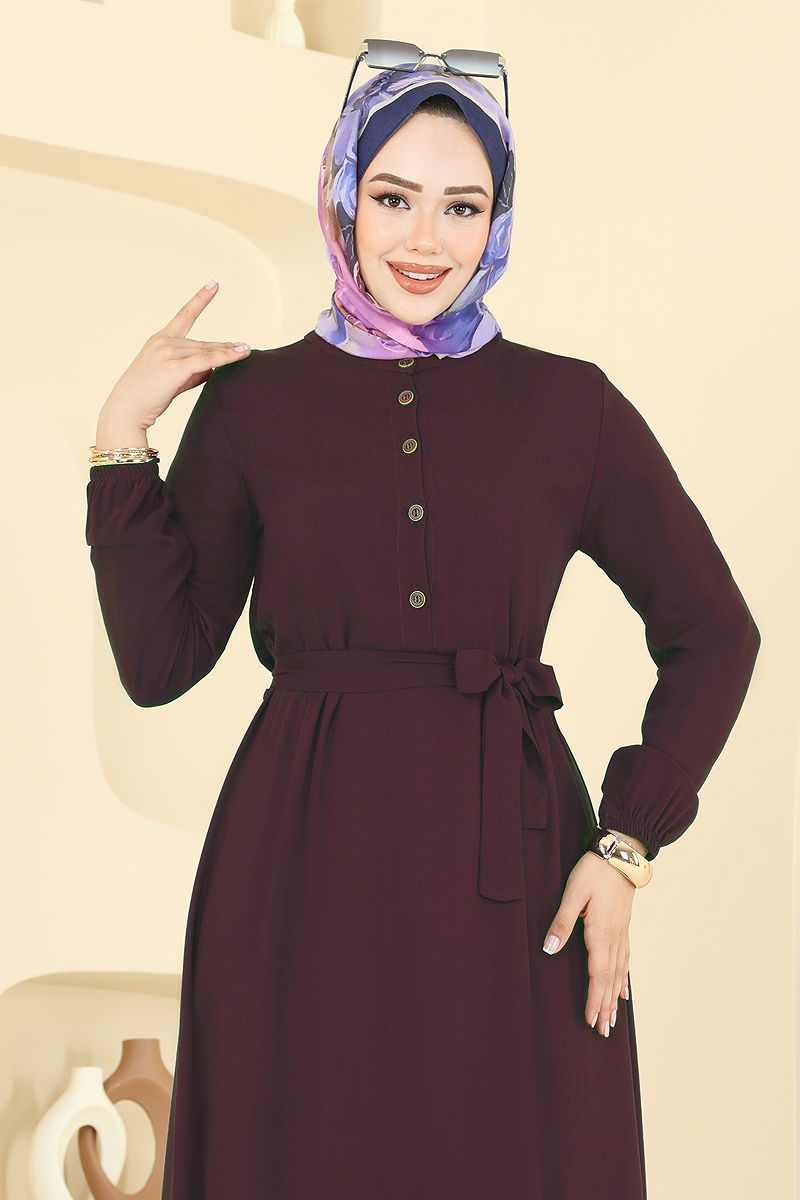 Önden Yarım Düğmeli Elbise 5003ERK1158 Mürdüm