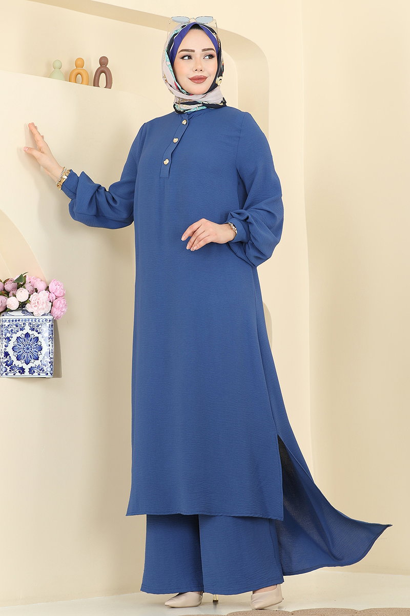 Ürün Özelliği : Yeni sezon tesettür moda ürünüdür. Ürün Önden düğmelidir. Tunik yandan yırtmaçlıdır.. Pantolon beli lastiklidir. Konsept fotoğraf çekimlerinden dolayı üründe ton farklılığı olabilir.