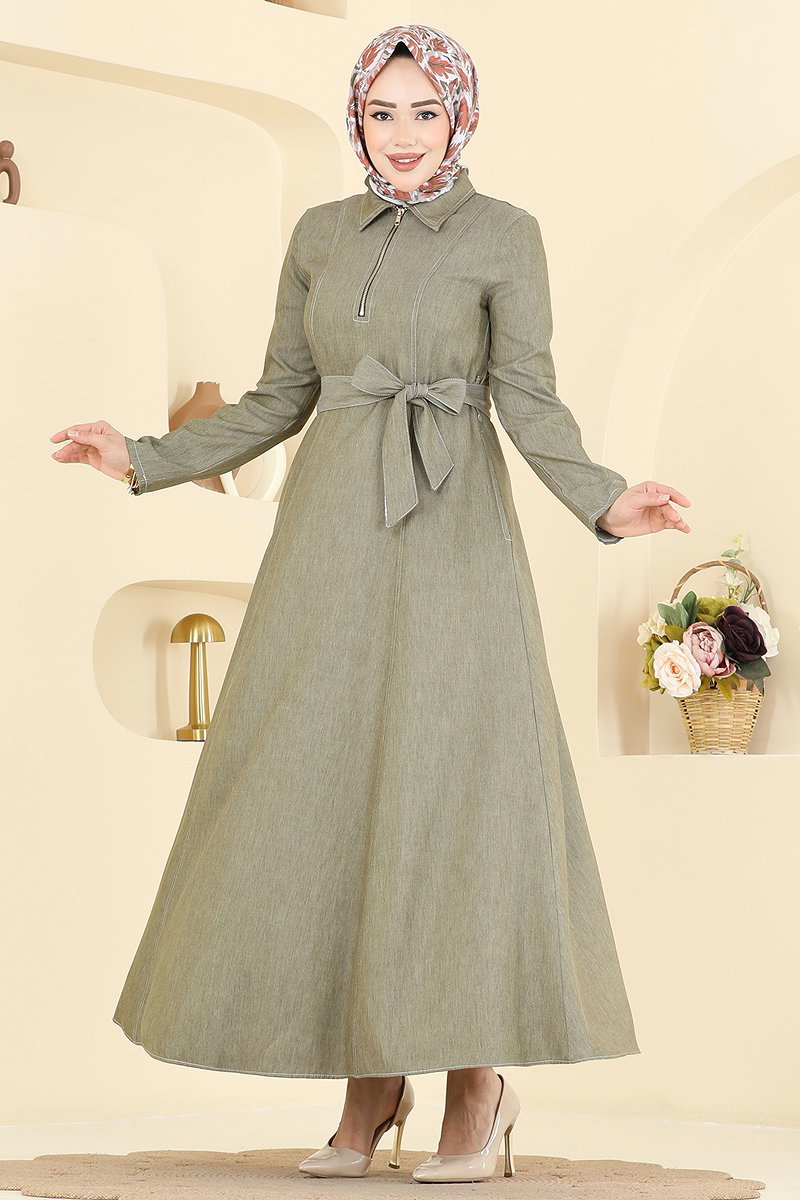 Önden Yarım Fermuarlı Elbise 4117FVN1181 Çağla