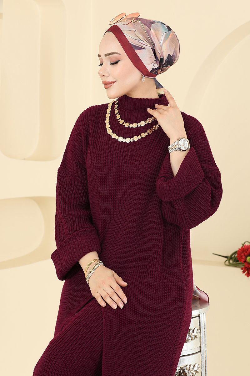 Sonbahar ve kış ayları için ideal olan bu Önden Yırtmaçlı Etekli Takım KOMBİN, tesettür giyimde şıklığı ve konforu bir araya getiriyor. Yumuşak triko kumaştan üretilen bu takım, yarım hakim yaka tunik ve yırtmaç detayları ile modern bir görünüm sunarken, kol manşetlerindeki katlama detayı şıklığı tamamlıyor. Tunik astarsızdır ve kafadan geçirme şekilde tasarlanmıştır, etek ise rahat bir kullanım için lastikli bel tasarımına sahiptir. Ürün, hassas yıkama programında 30 derecede yıkanabilir.