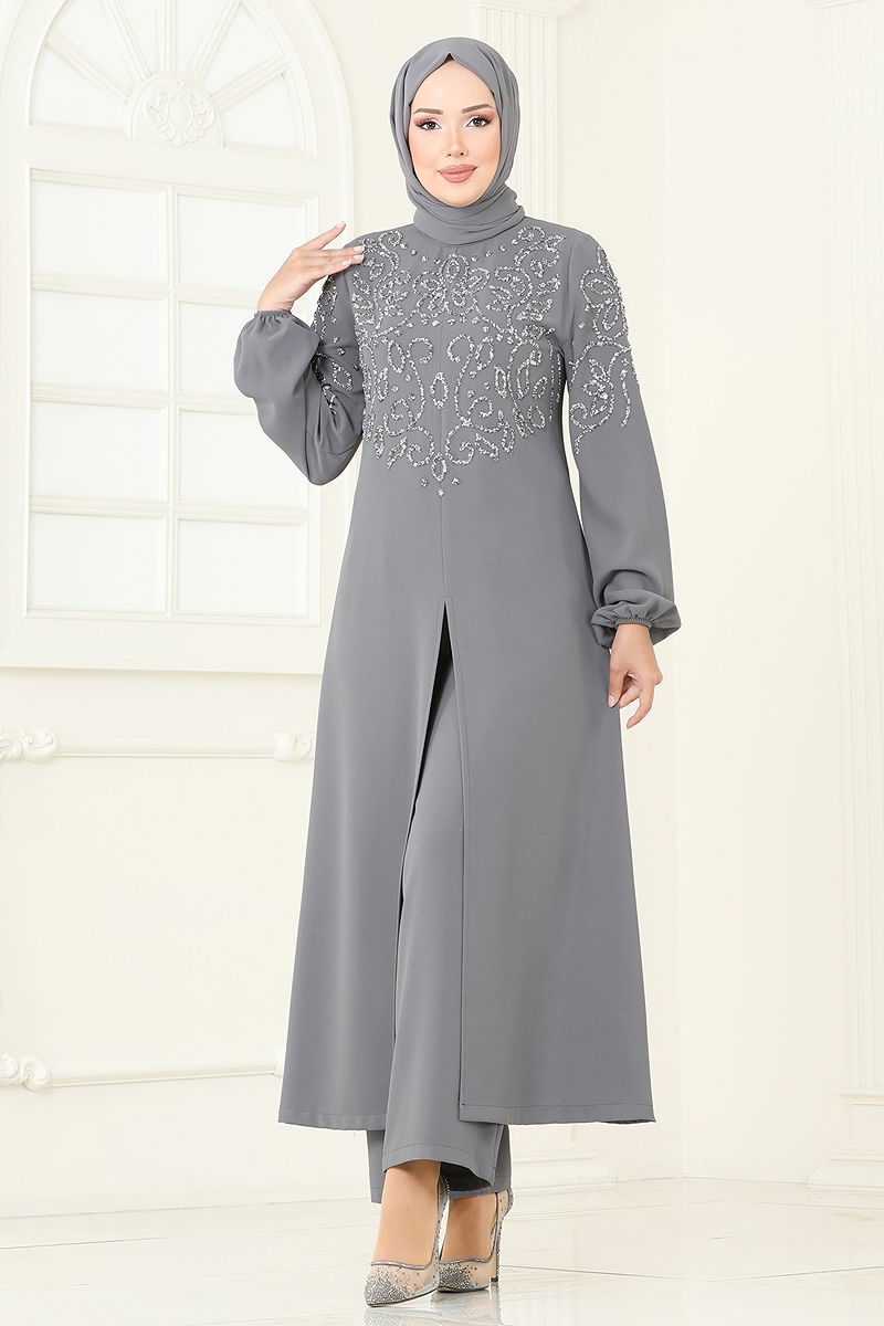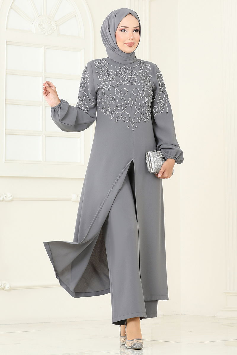 Önden Yırtmaçlı Şık Takım 8062ABK1075 Gri