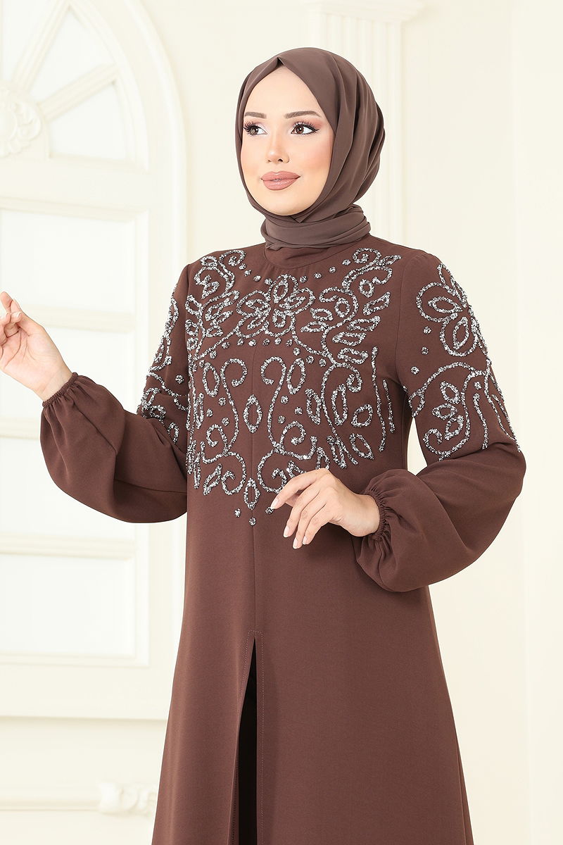 Önden Yırtmaçlı Şık Takım 8062ABK1075 Kahve