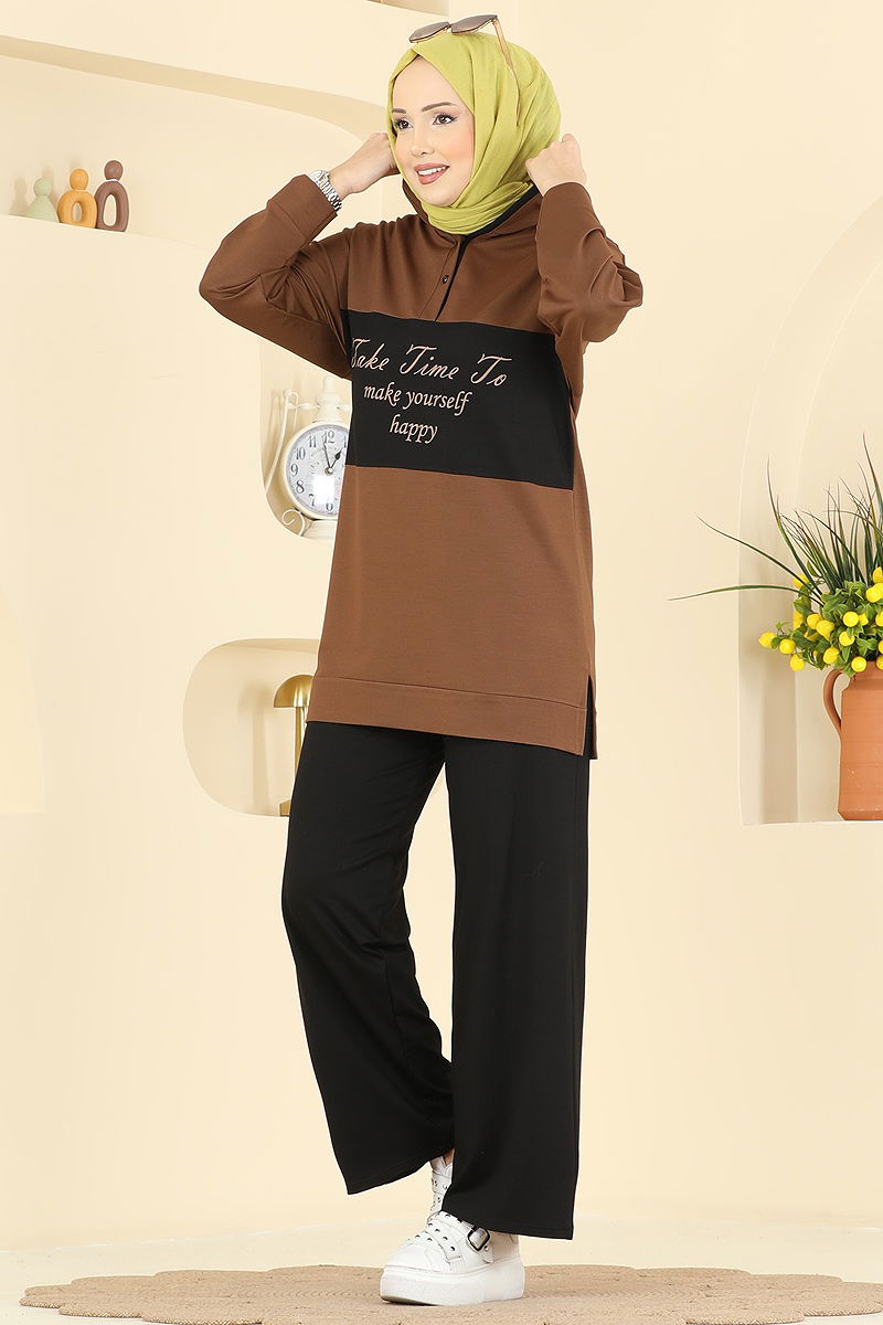 Önü Baskı Detaylı Takım Kahve&Siyah