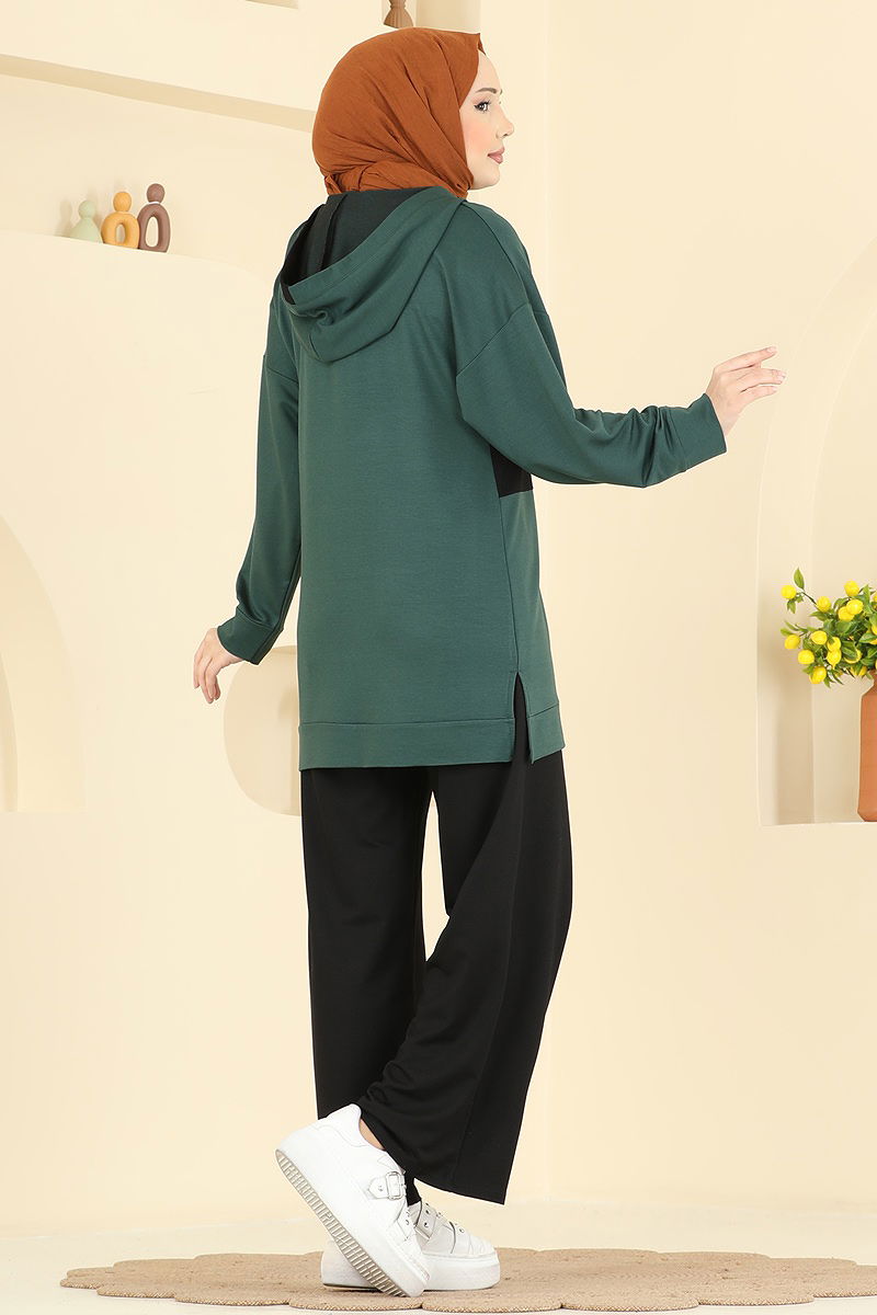 Önü Baskı Detaylı Takım Zümrüt&Siyah