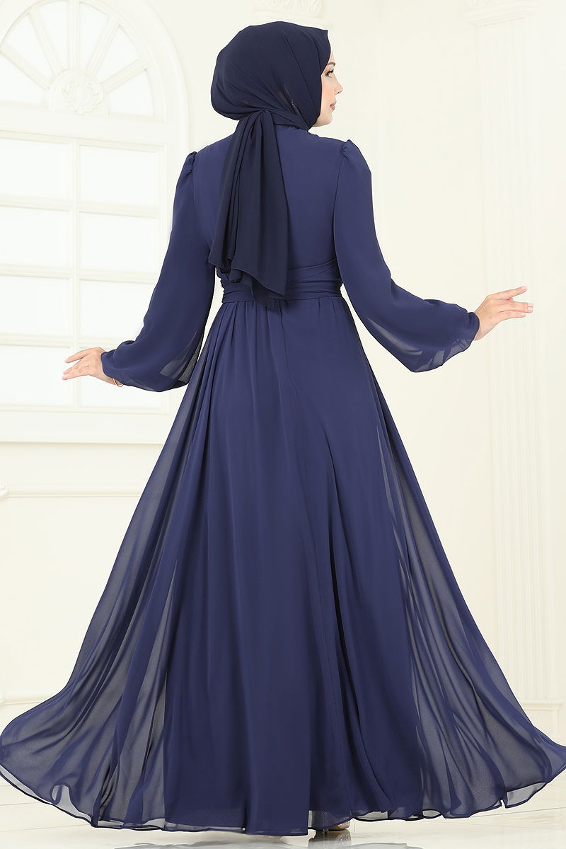 Önü Drape Detaylı Şifon Abiye, tesettür modasına uygun, dört mevsim kullanılabilir bir şıklık sunar. Şifon kumaştan üretilmiş olan bu abiye, astarlıdır ve sırttan fermuarlı yapısıyla pratik bir kullanım sağlar. Sadece kuru temizleme ile bakımı yapılabilir ve manşetleri lastikli olarak tasarlanmıştır. Şık bir kuşak detayı ile tamamlanan bu elbise, zarafeti ve konforu bir arada sunuyor.