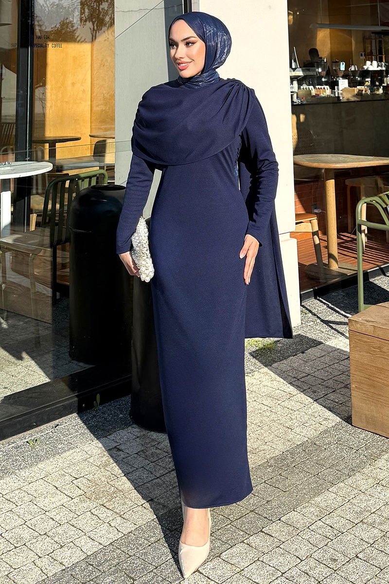 Önü Drapeli Örme Krep Elbise, dört mevsim rahatlıkla kullanabileceğiniz şık bir tesettür ürünüdür. Bisiklet yaka ve sırttan fermuarlı tasarımı, modern çizgileriyle ön plana çıkarken, astarsız yapısıyla hafifliği ve konforu bir arada sunar. Hassas giysiler için uygun olan 30 derecede yıkanma özelliği ile pratik ve uzun ömürlü kullanım sağlar. Modelin üzerindeki 38 beden örneği ile ideal fiti görebilirsiniz.