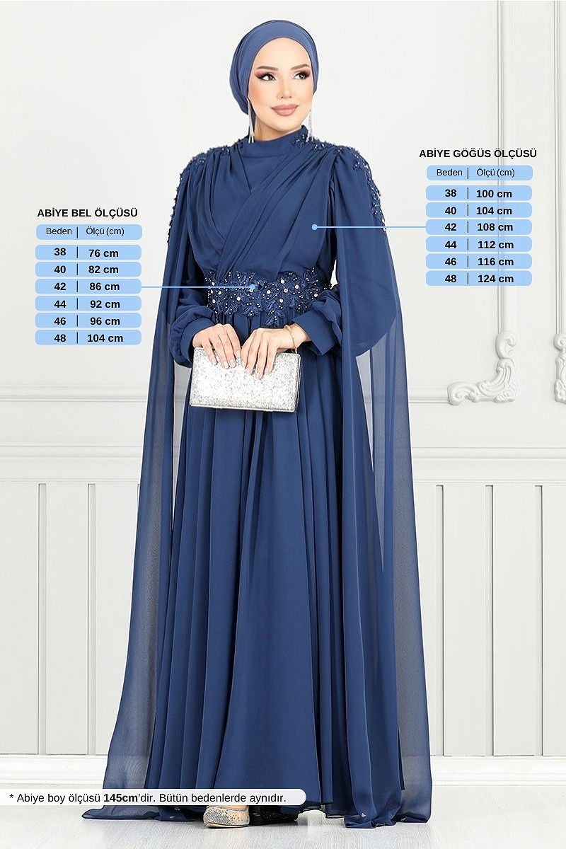 Ürün Özelliği : Yeni sezon tesettür moda ürünüdür. Ürün Hakim yakadır. Astarlıdır. Ürün Sırttan fermuarlıdır. Güpür detayı dikilidir. Boncuk detayları çakımdır. Taş detayları çakımdır. Şifon pelerin detayı dikilidir. Konsept fotoğraf çekimlerinden dolayı üründe ton farklılığı olabilir.