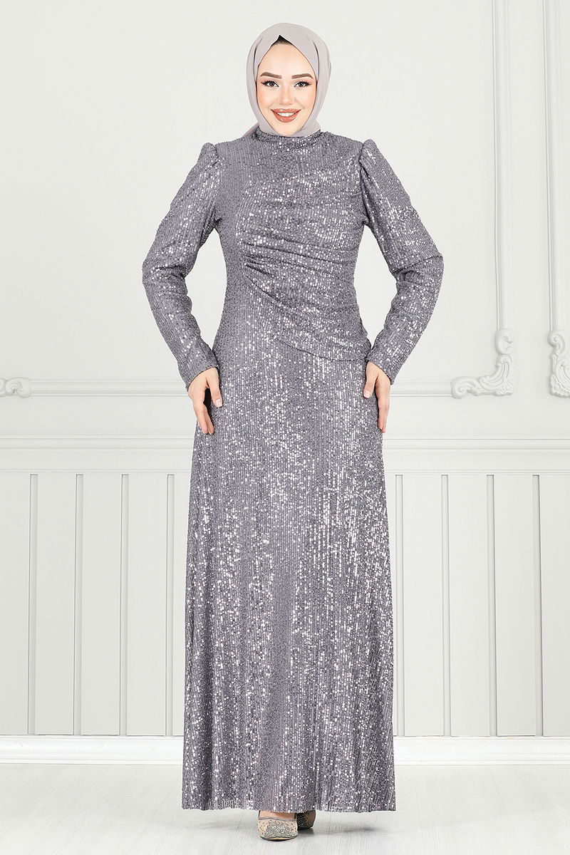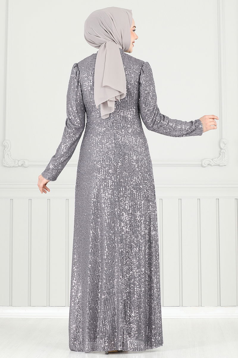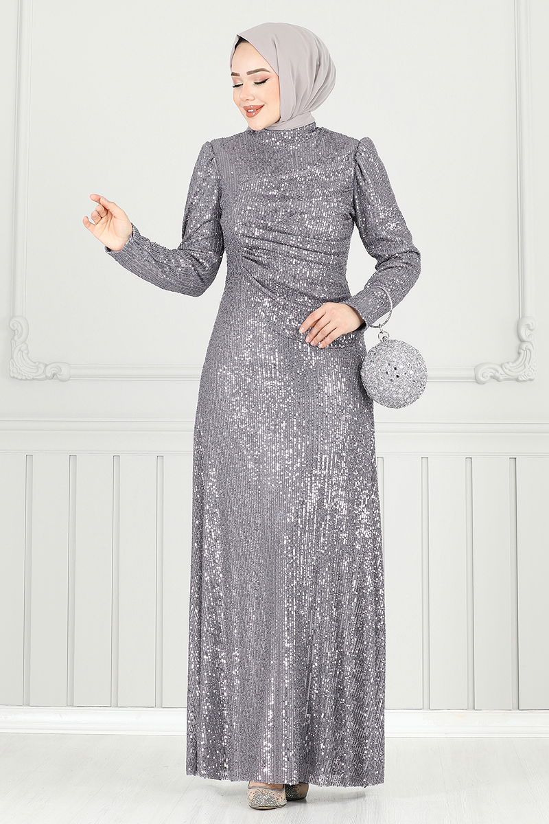 Önü Drapeli Tesettür Abiye Gri