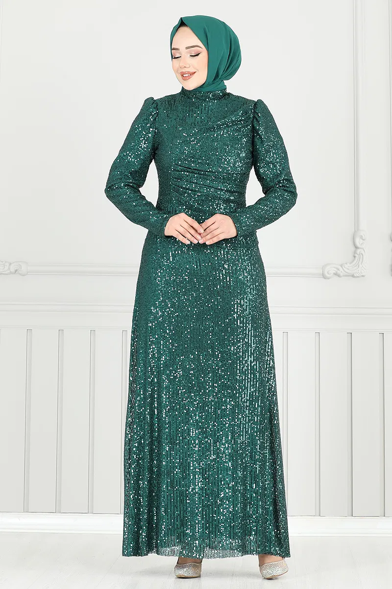 Önü Drapeli Tesettür Abiye; dört mevsim boyunca giyilebilen şık ve göz alıcı bir seçenek. Pul payet detayları ile zenginleştirilmiş olan bu abiye, yarım hakim yakası ve astarlı yapısı ile rahatlık ve şıklığı bir arada sunuyor. Sırttan fermuarlı tasarımı kolay bir kullanım sağlarken, kuru temizleme ile uzun ömürlü kullanım sunar. Bu abiye, özel günlerinizde göz kamaştırıcı bir görünüm elde etmenizi sağlayacak.