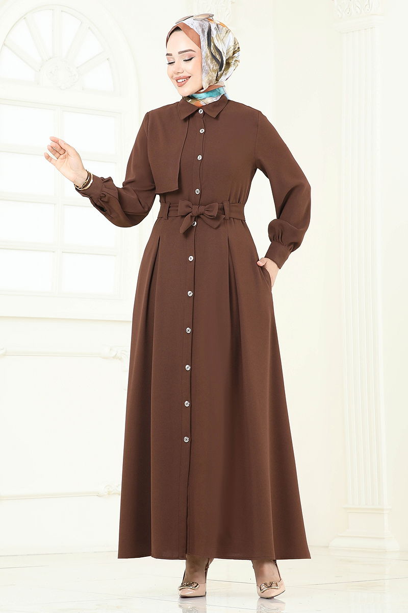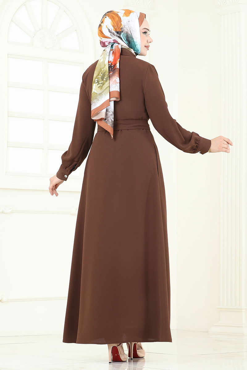 Önü Düğmeli Elbise Ferace 283ASN888 Kahve