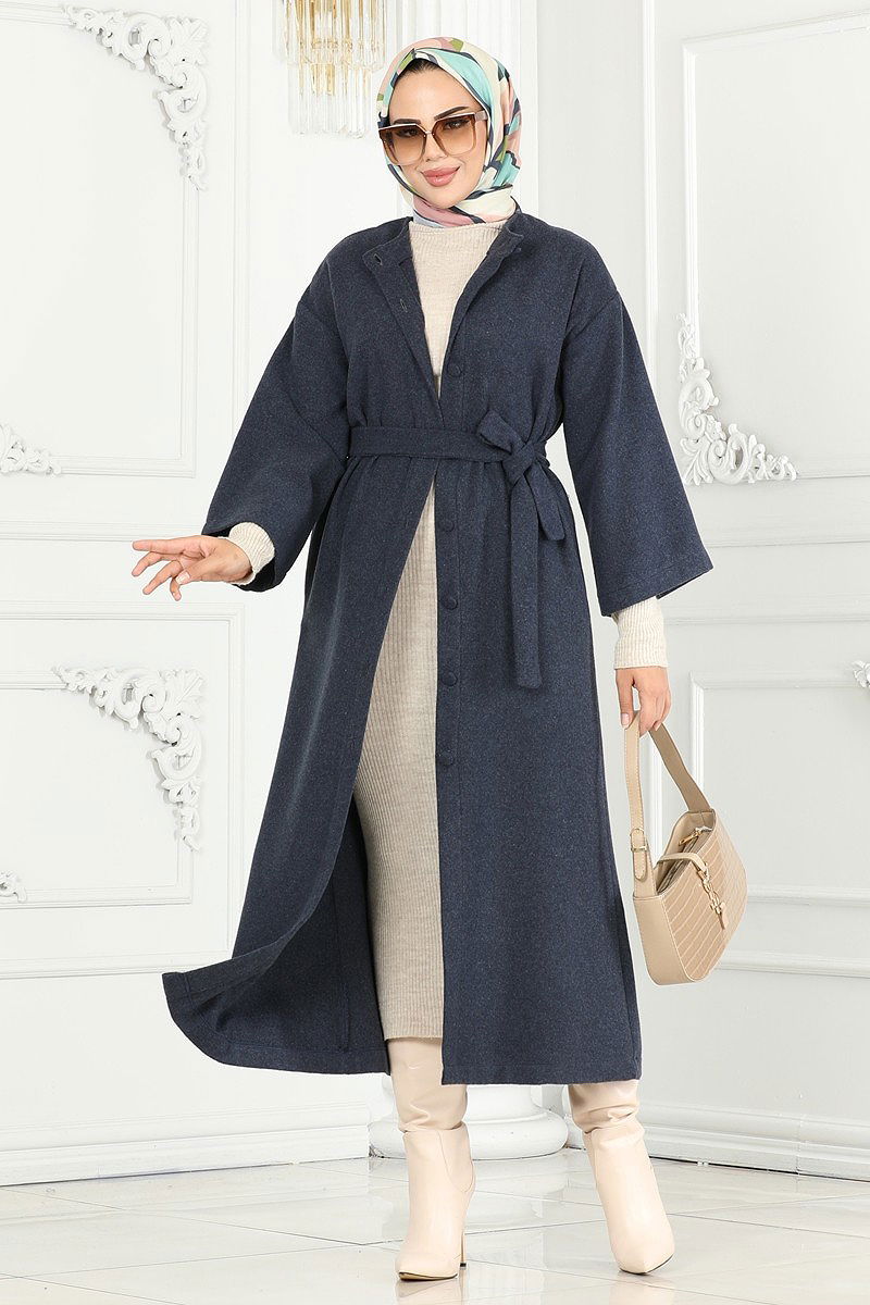 Önden Düğmeli Kaban model tesettür ürünüdür.Kış sezonunda kullanılabilir.Sadece kuru temizleme yapılmalıdır.Birinci sınıf Kaşe kumaştan imal edilmiştir.Ürün Bisiklet yakadır.Ürün Önden düğmelidir.Astarsızdır.(Modelin üzerindeki ürün 38 bedendir.)Cep mevcuttur.
