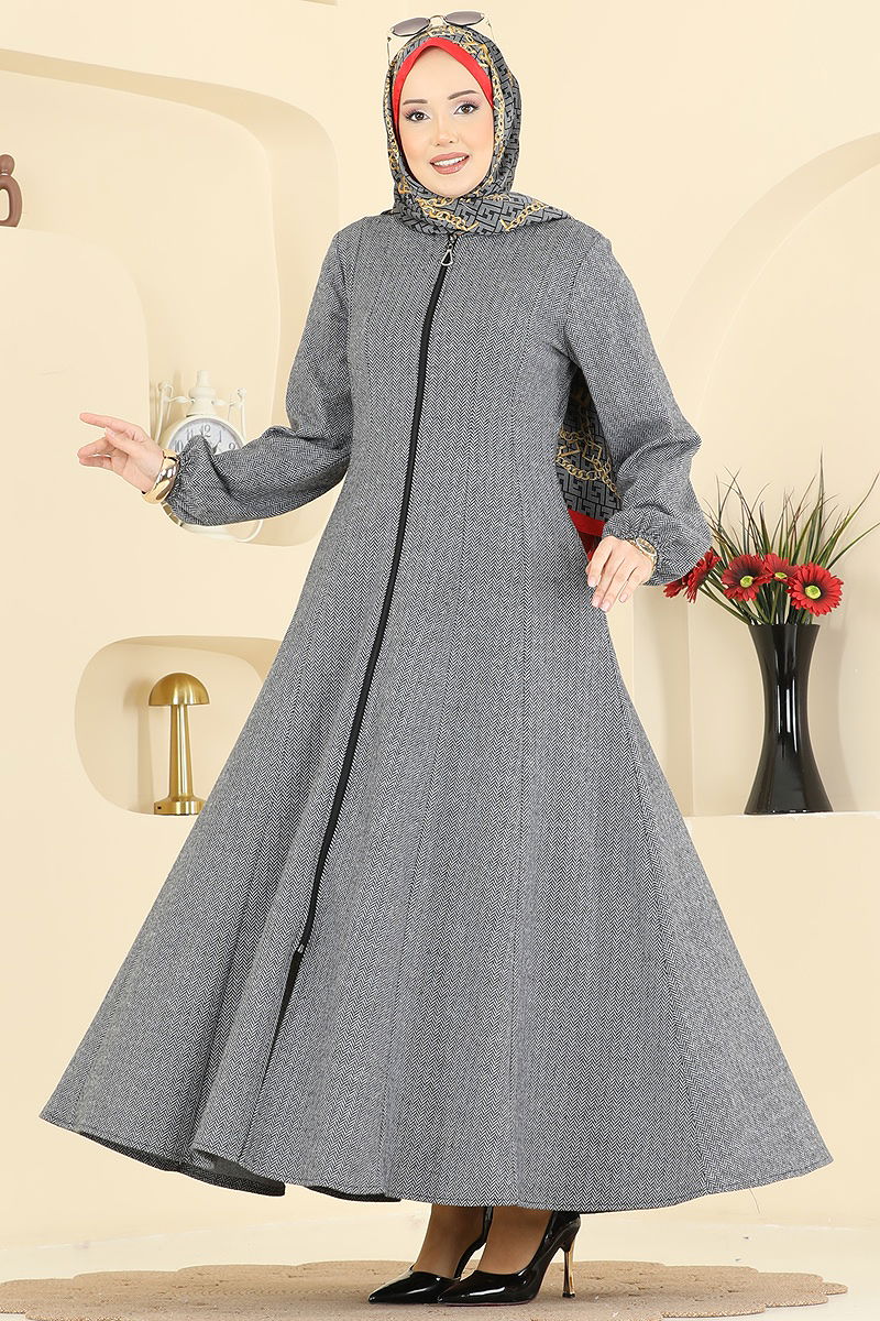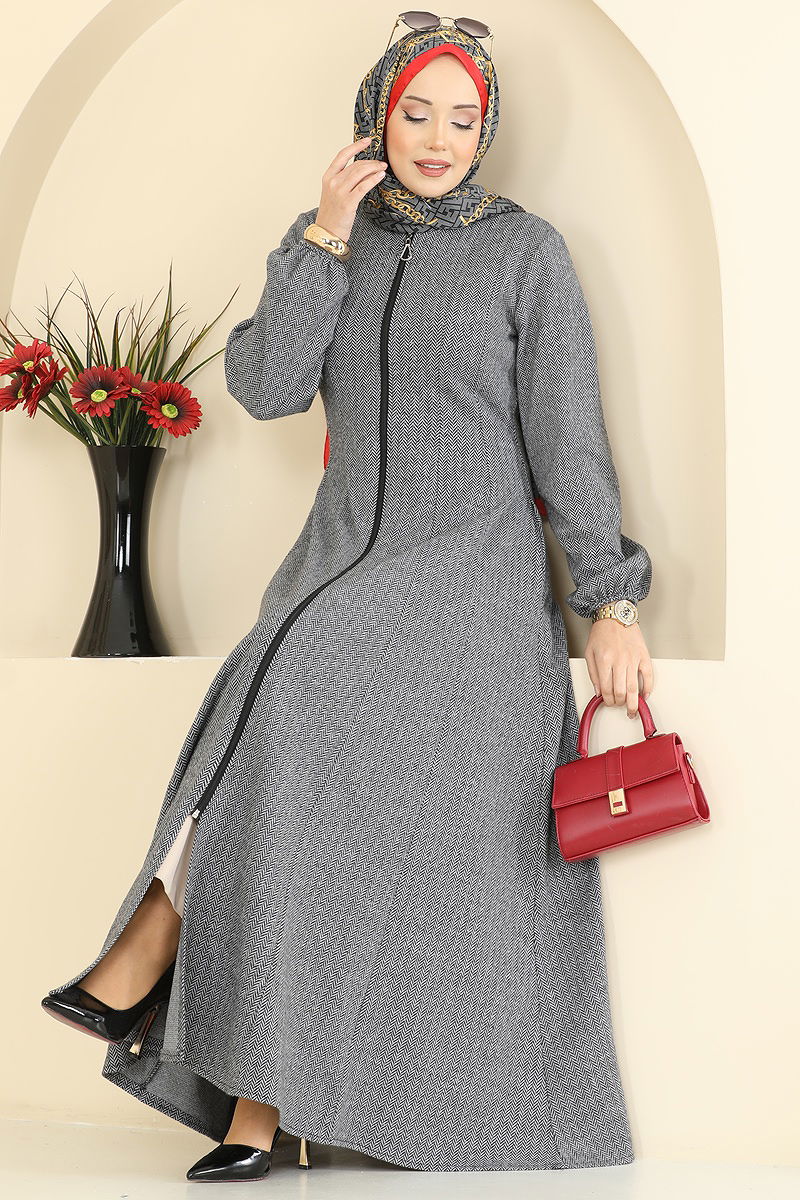 Önü Fermuarlı Balıksırtı Ferace 24091UKBK1161 Gri