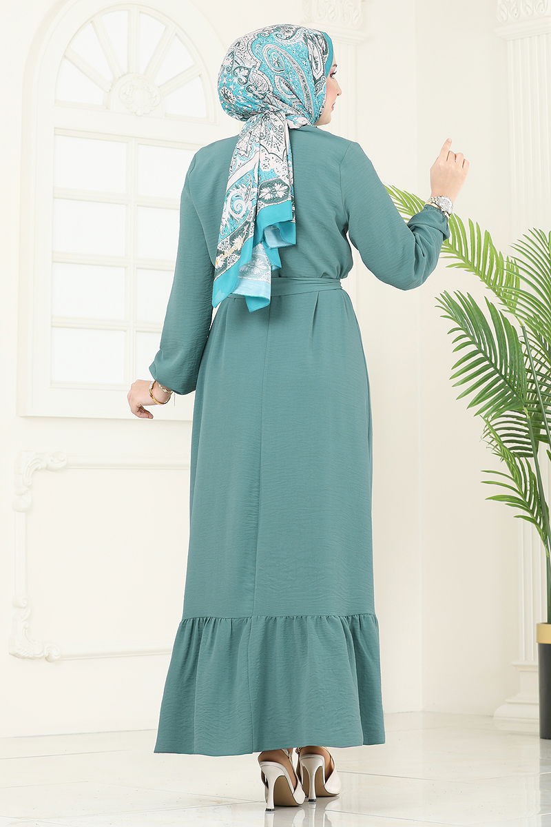 Elegant and modern, the Ruffled Front Modest Dress ensures you maintain your style in any setting throughout all seasons. Made from Aerobin fabric, this dress offers lightweight and breathable comfort all day long. Its mock-neck and half-button front provide practicality, while the elastic cuffs and included optional belt offer varied styling options. It can be washed at 30 degrees with a gentle cycle.