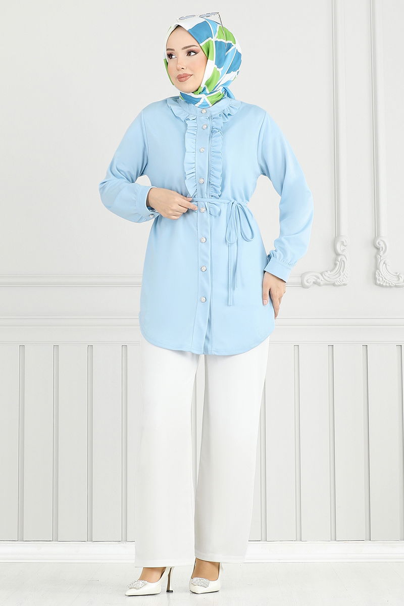 Önü Fırfırlı Tesettür Takım Bebe Mavisi&Ekru