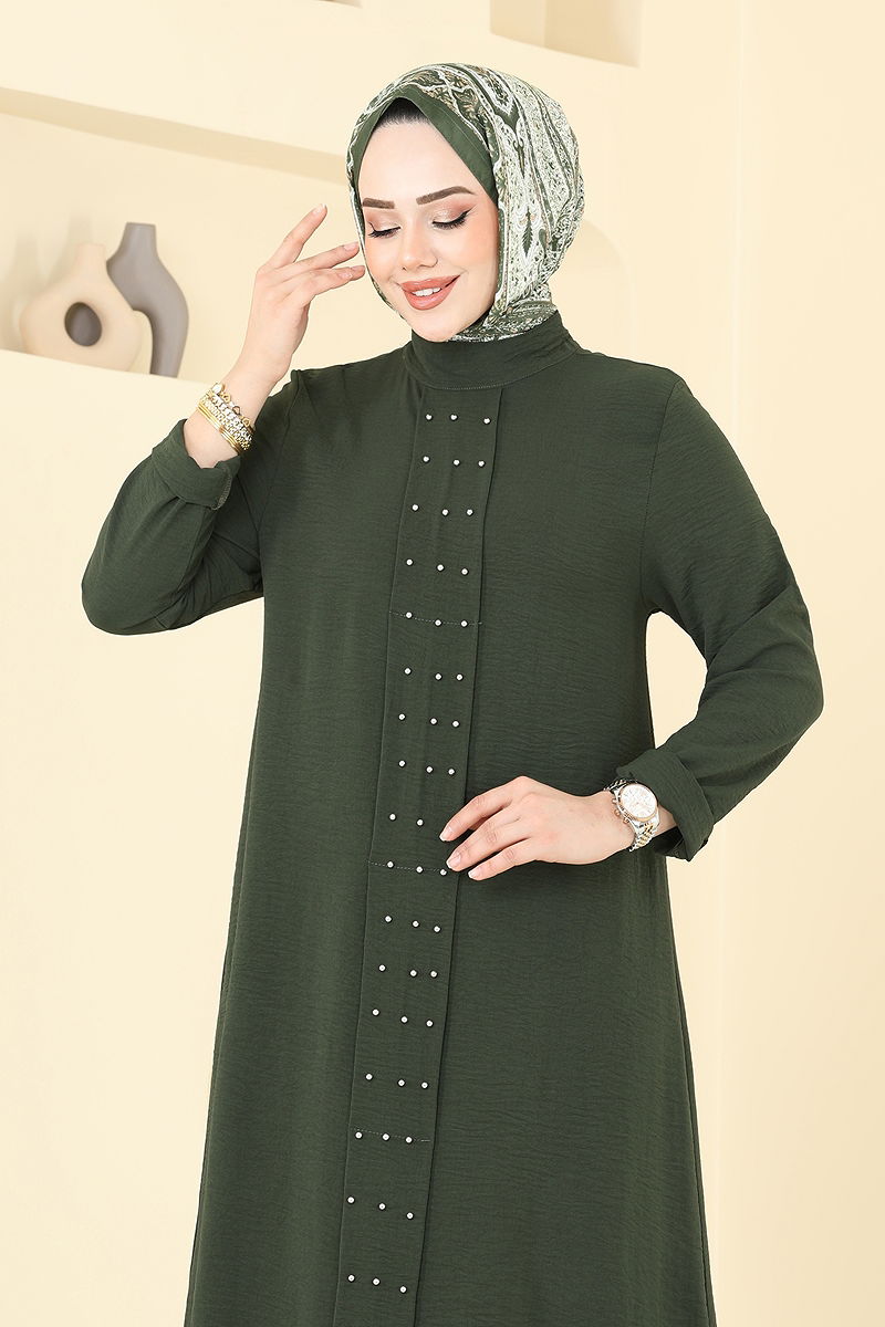 Önü İncili Tesettür Takım 3101HBS856 Haki