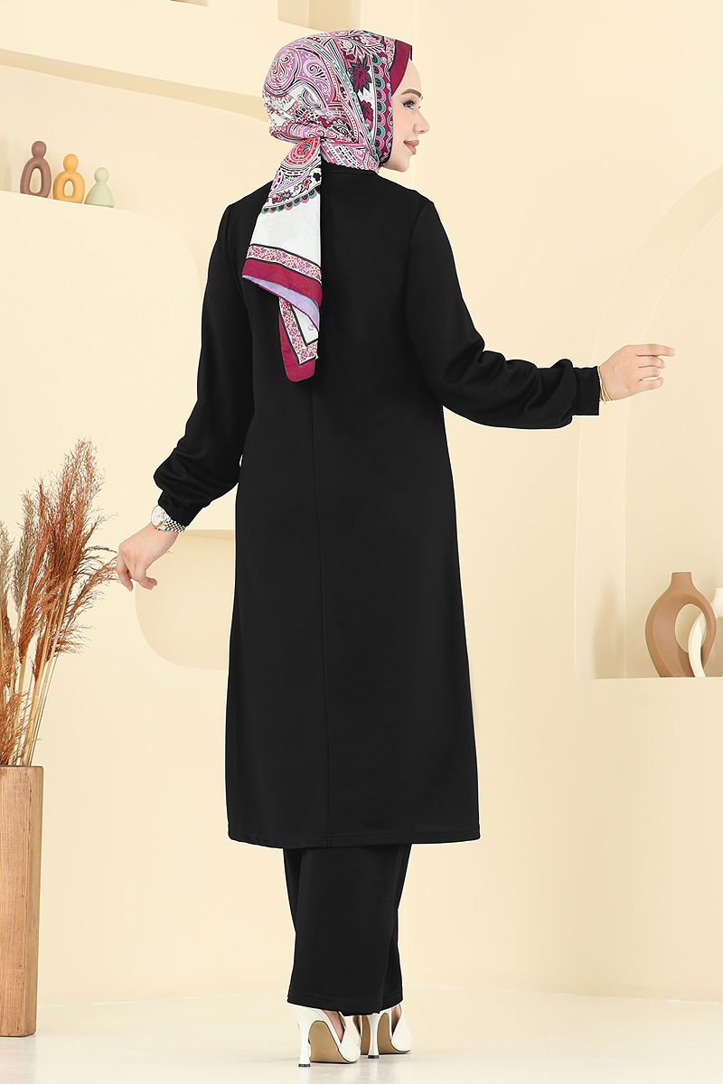 Önü Pile Detaylı Takım Siyah
