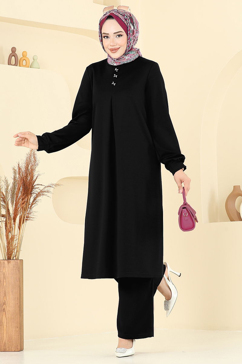 Ürün Özelliği : Yeni sezon tesettür moda ürünüdür. Ürün Bisiklet yakadır. Tunik yandan yırtmaçlıdır.. Astarsızdır. Düğmeler aksesuardır. Pantolon beli lastiklidir.Konsept fotoğraf çekimlerinden dolayı üründe ton farklılığı olabilir.
