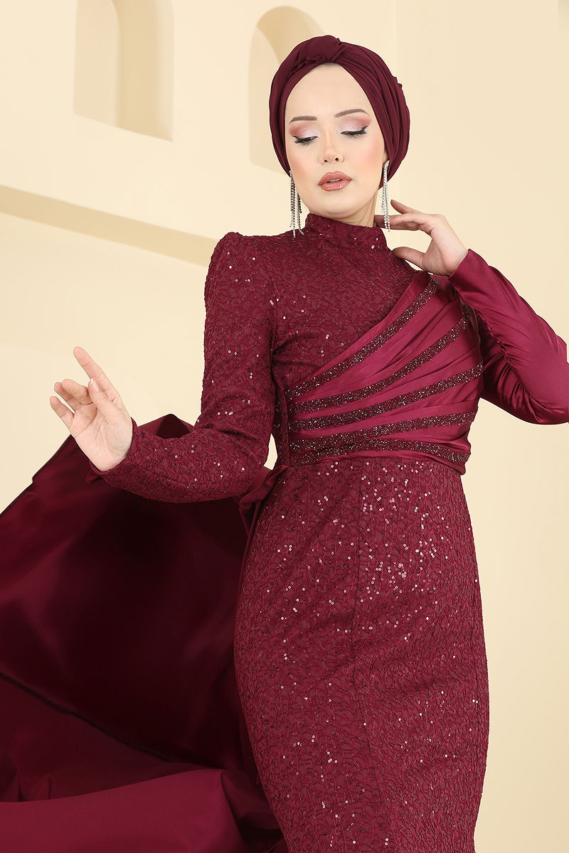Önü Saten Drapeli Abiye 2849ELCK1161 Bordo