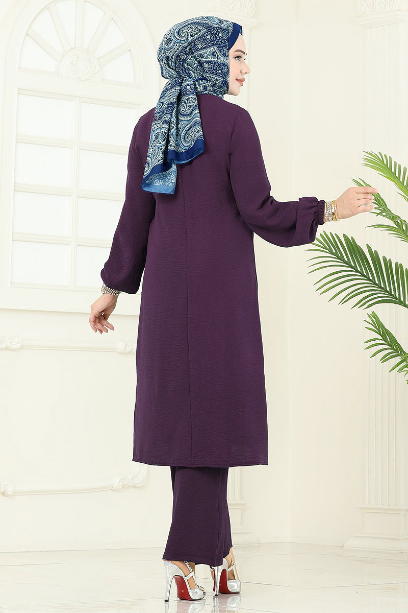 Ürün Özelliği : Yeni sezon tesettür moda ürünüdür. Yandan bağlanabilir kemeri bulunmaktadır. Sırttan kullanılabilir bir düğmesi bulunmaktadır. Ürün Bisiklet yakadır. Tunik yandan yırtmaçlıdır.. Astarsızdır. Taş detayları çakımdır. Pantolon beli lastiklidir. Manşet lastiklidir.Konsept fotoğraf çekimlerinden dolayı üründe ton farklılığı olabilir.
