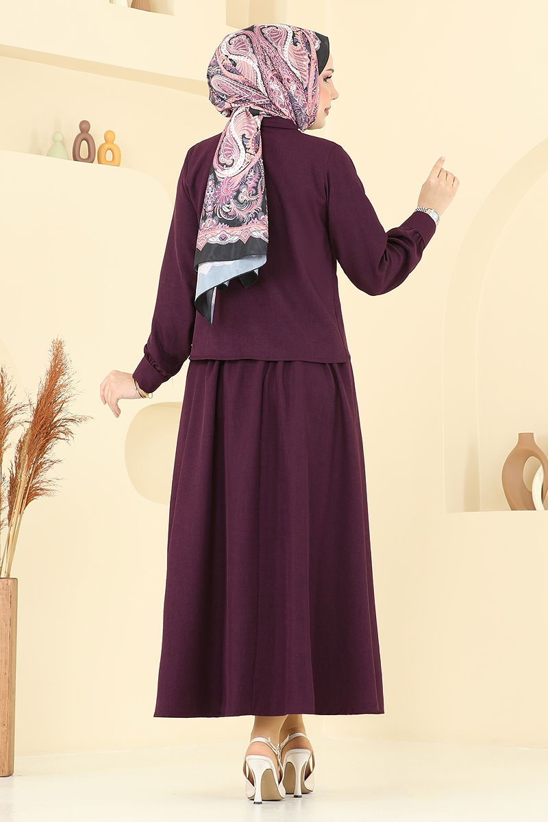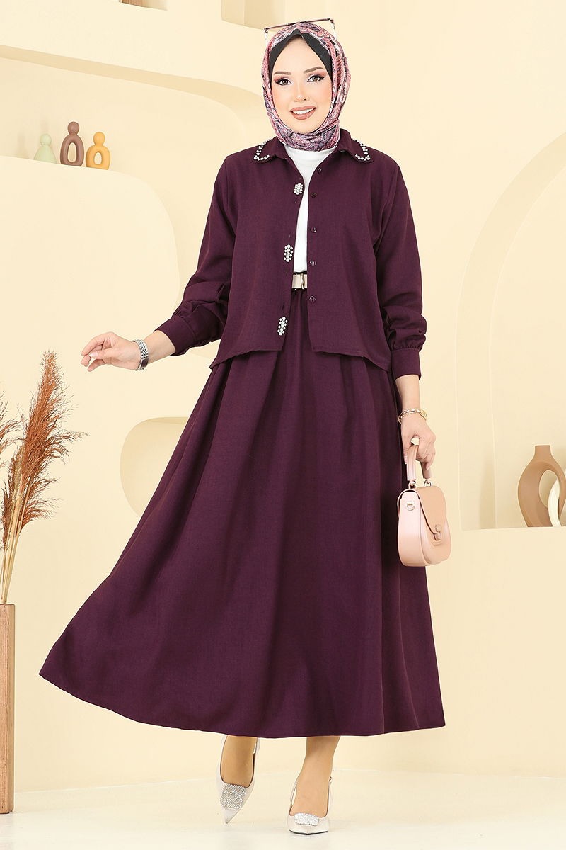 Önü Taşlı Etekli Sofia Takım Mürdüm