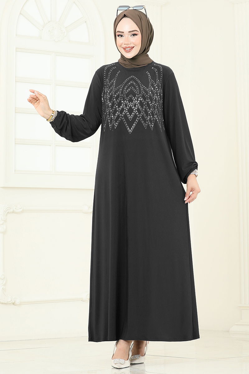 Önü Taşlı Şık Elbise 3401UZ662 Antrasit