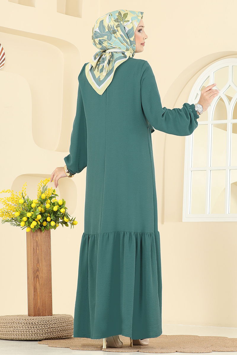 Önü Taşlı Tesettür Elbise Koyu Mint