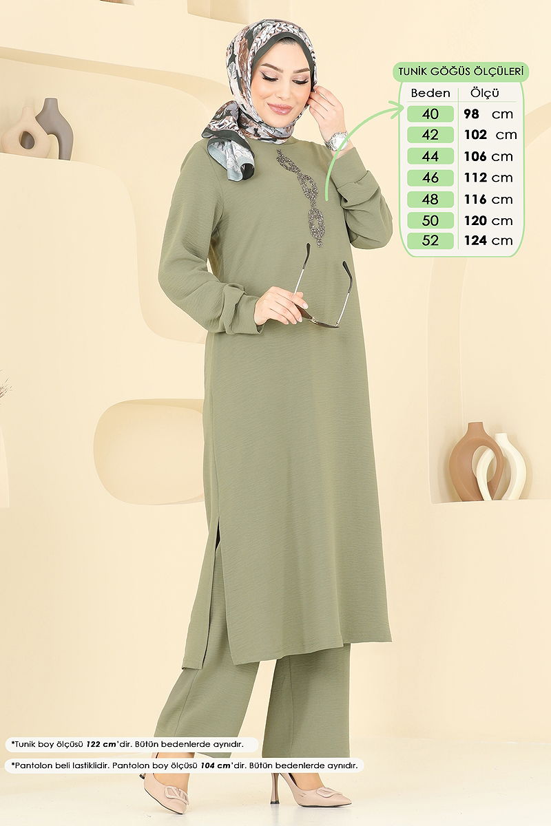 Önü Taşlı Tesettür Takım 2627SL432 Çağla