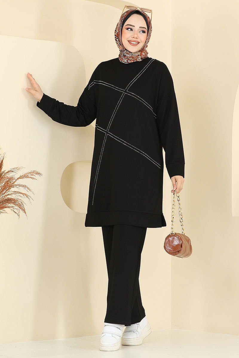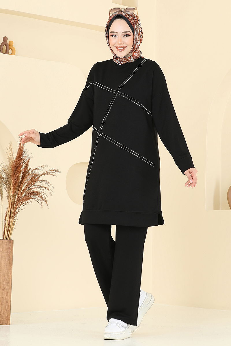 Önü Taşlı Tesettür Takım 2693AYD574 Siyah