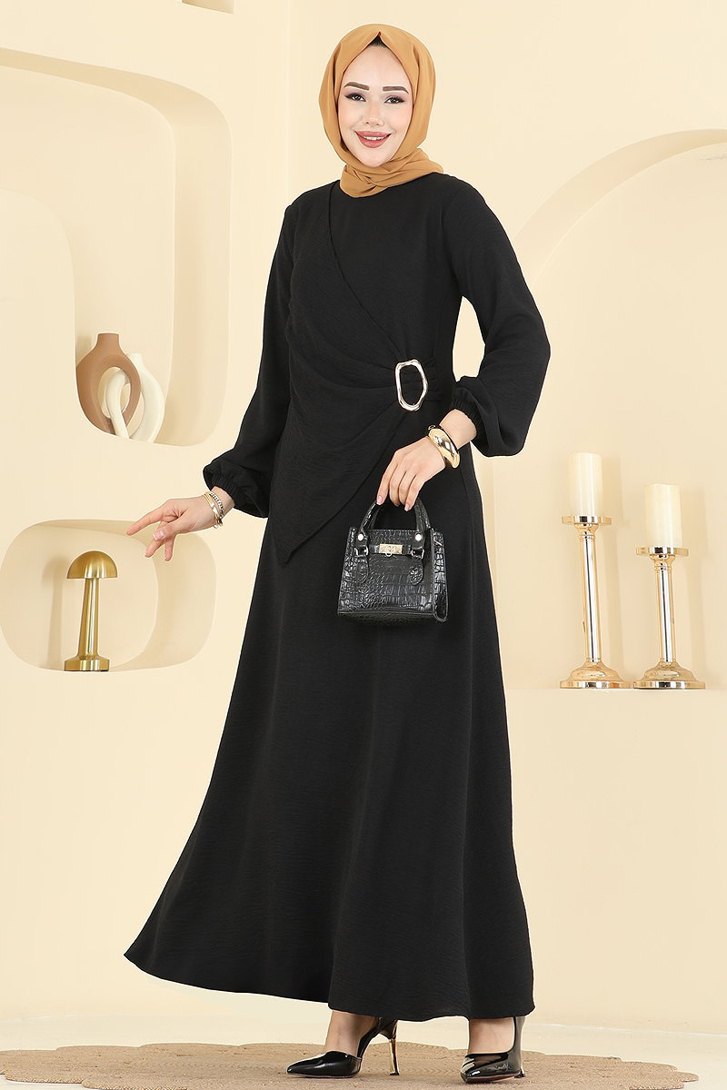 Önü Toka Detaylı Elbise 2638MSZ1172 Siyah