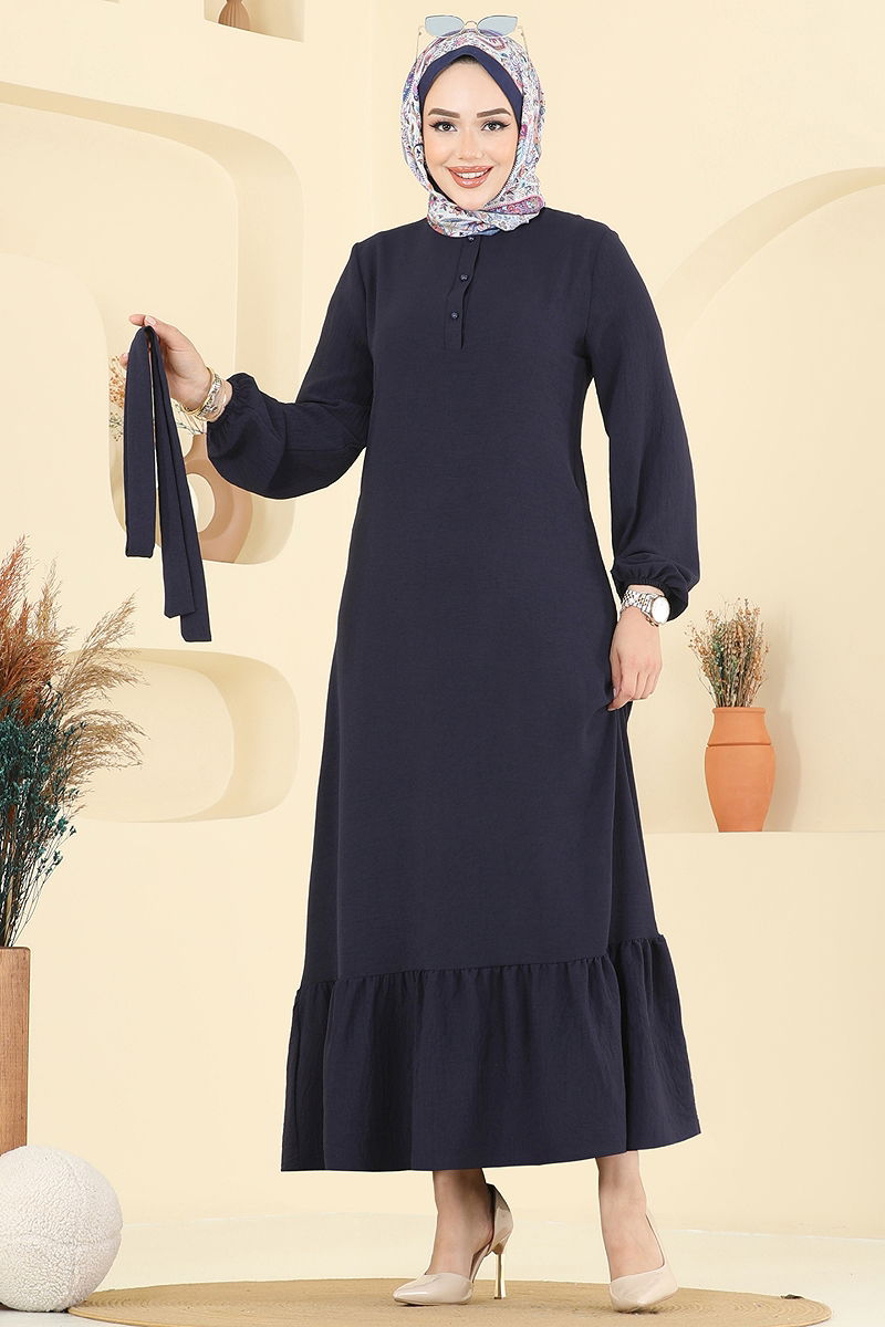 Şık ve modern tasarımıyla göz dolduran Önü Yarım Düğmeli Elbise, dört mevsim rahatlıkla kullanabilirsiniz. Aerobin kumaştan üretilen bu tesettür elbise, 30 derecede hassas yıkama ile temizlenme özelliğine sahiptir. Bisiklet yaka ve manşet lastik detaylarıyla zarif bir görünüm sunar. Yarım düğmeli ön tasarımı ile pratik kullanım imkanı sağlar. Astarsız yapısıyla hafif ve konforlu bir deneyim sunan bu elbise, her ortamda şıklığınızı korumanız için idealdir.