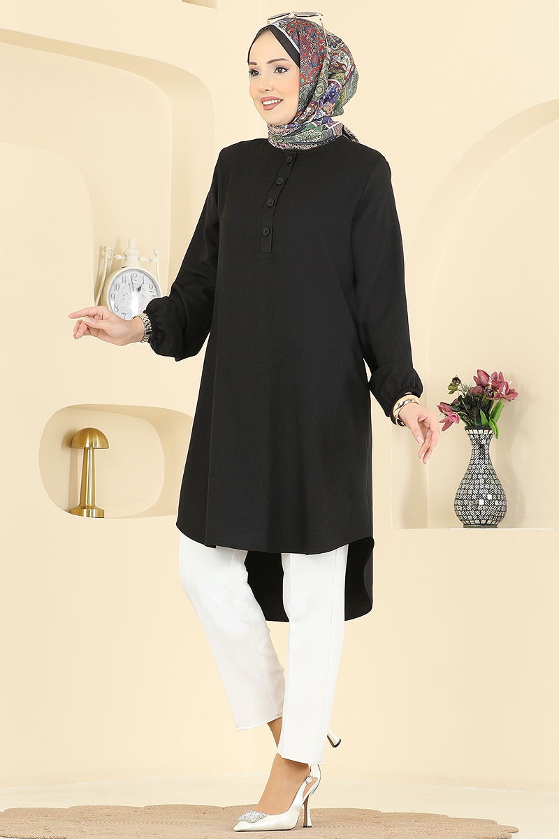 Önü Yarım Düğmeli Tunik 3080KTR750 Siyah