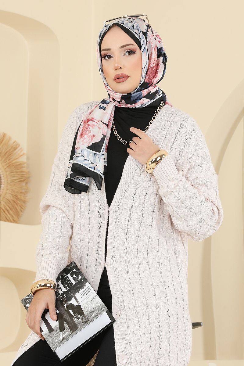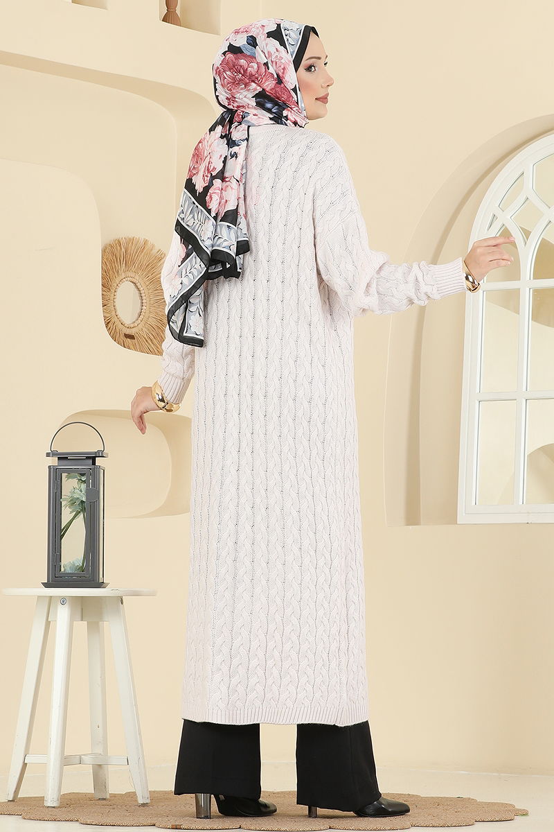 Örgü Desenli Triko Hırka 377BRZ597 Ekru