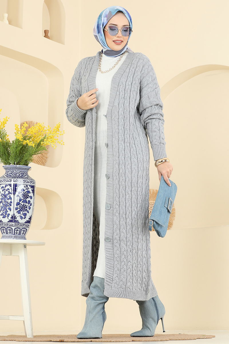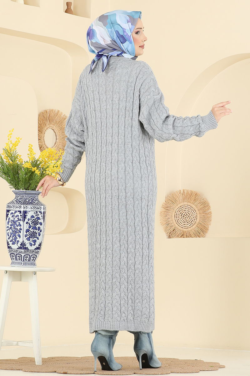 Örgü Desenli Triko Hırka 377BRZ597 Gri