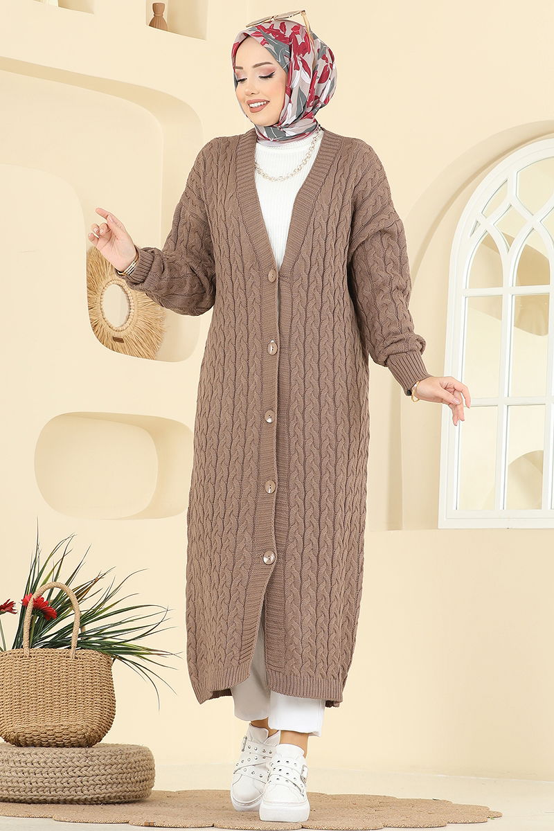 Örgü Desenli Triko Hırka Koyu Vizyon