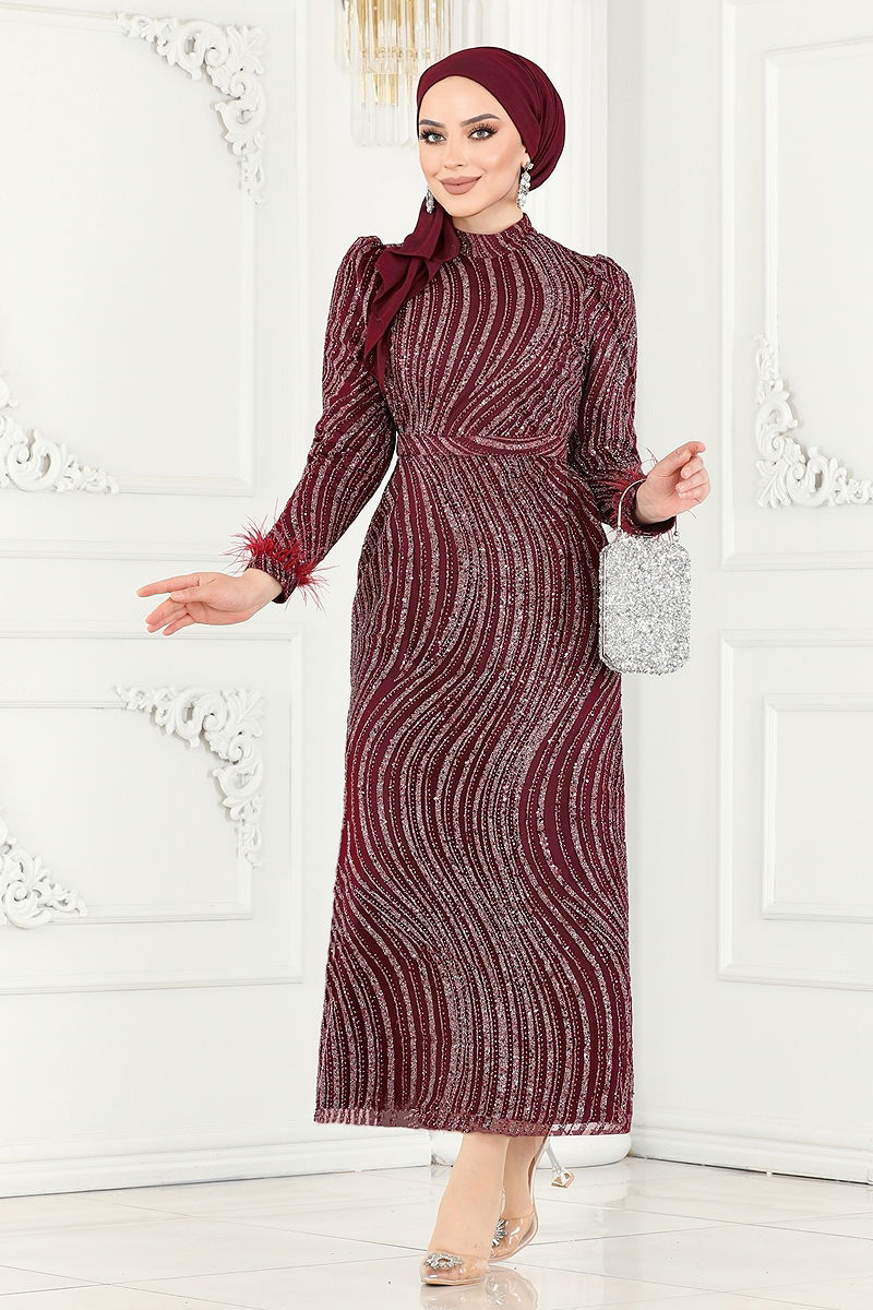Otriş Detaylı Kalem Abiye Bordo