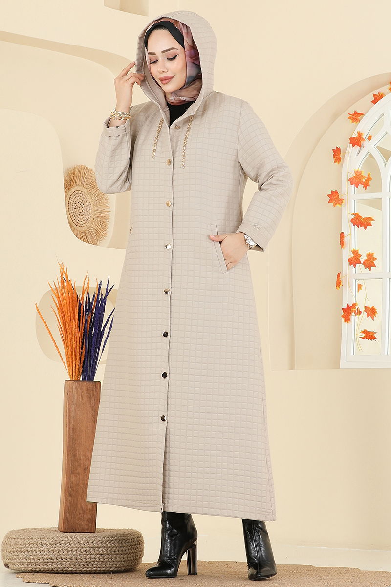 المنتج لديه ياقة مع قبعة. المنتج به أزرار من الأمام. غير مبطنة. يتم خياطة السلسلة على المنتج. الجيب متاح. قد يكون هناك اختلاف في الدرجة اللونية في المنتج بسبب التقاط الصور الفوتوغرافية.