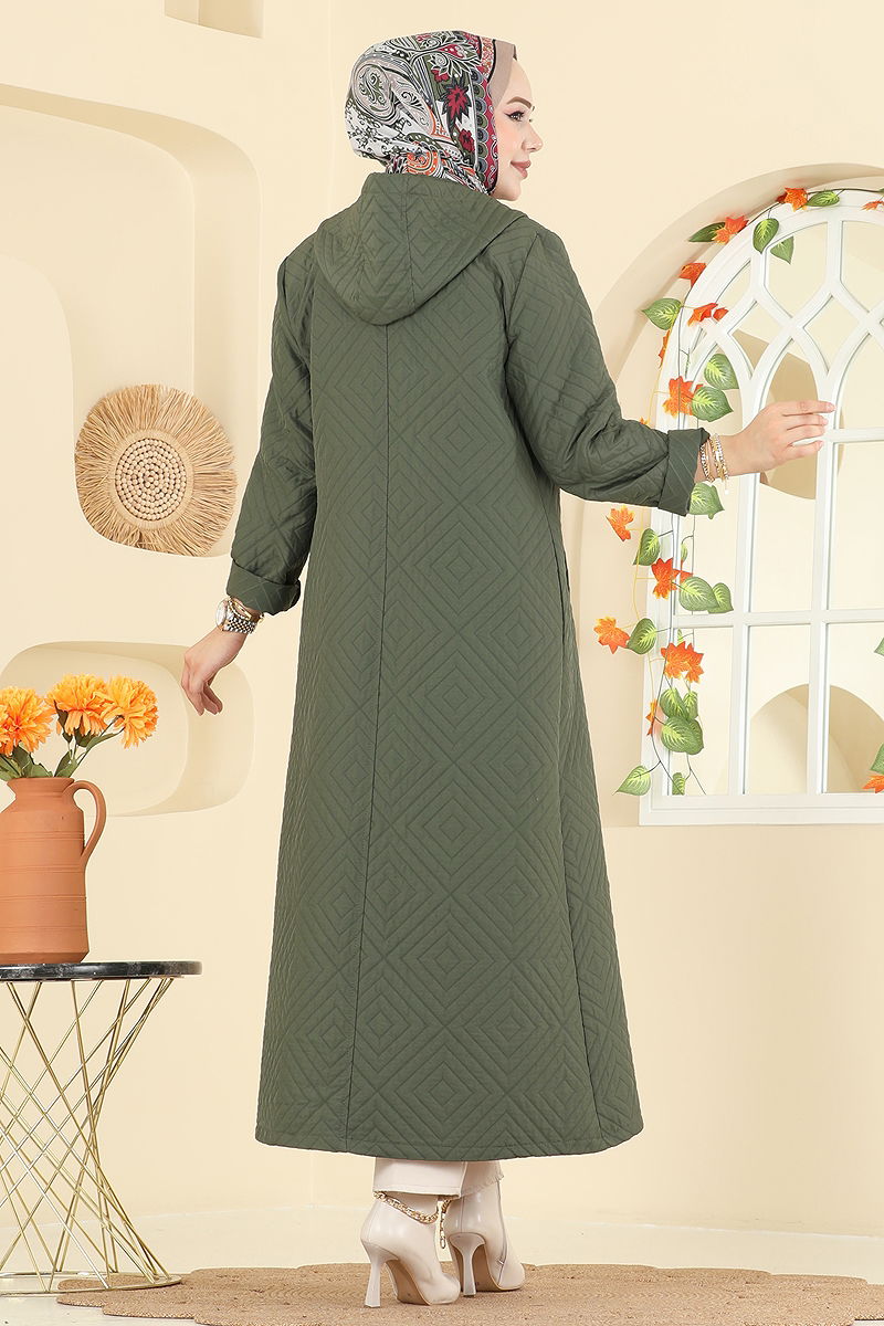 Product Feature : It is a new season hijab fashion product. The product has a Hooded collar. The product has From the front buttons. Unlined. The chain is sewn to the product. The hood is sewn to the product. Pocket available. There may be a tonal difference in the product due to concept photo shoots.