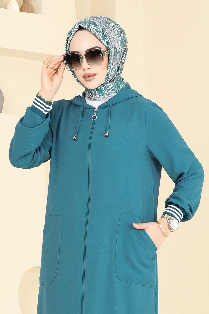 Product Feature : It is a new season hijab fashion product. The product has a Hooded collar. Unlined. The product has a zipper at the From the front part. The hood is sewn to the product. Pocket available. There may be a tonal difference in the product due to concept photo shoots.