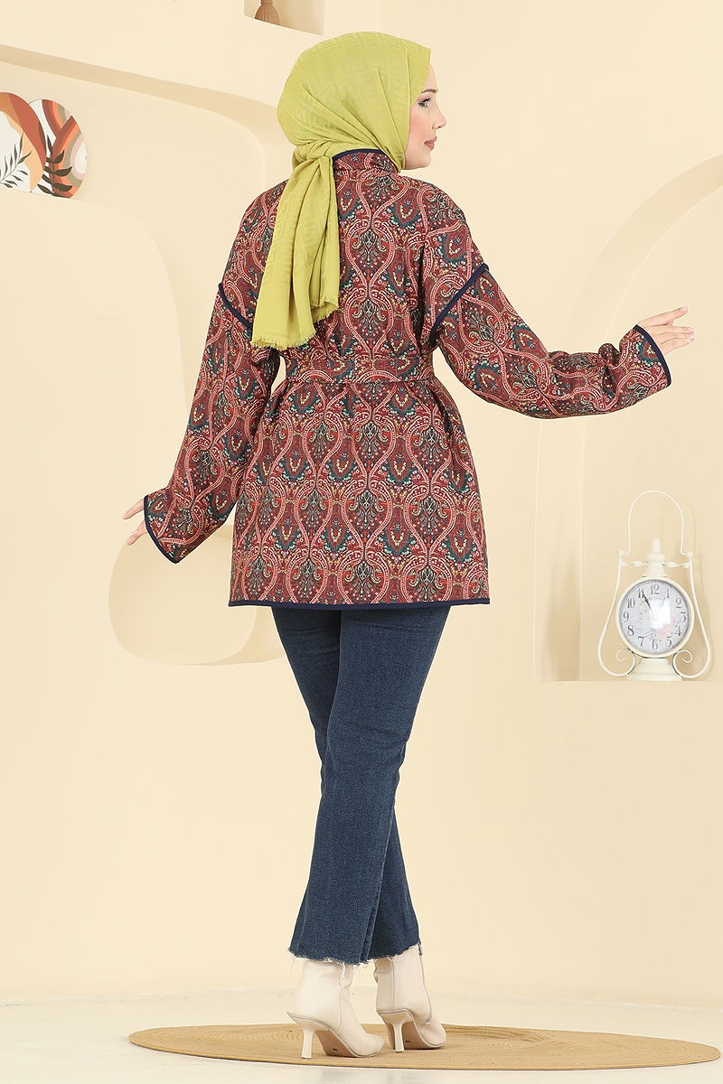 The Ethnic Patterned Quilted Cape is a unique modest wear item that blends style and comfort. Ideal for Autumn and Winter, this cape can be washed at 30 degrees on a gentle cycle. Its quilted fabric adds both elegance and durability. The straight collar design and unlined structure offer a modern and practical application. It features two functional buttons at the front for easy use. The product comes in size 1 and ensures comfort throughout the day.