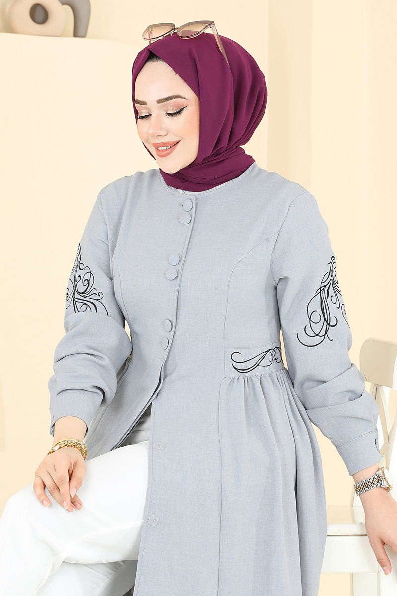 المنتج لديه ياقة دائرية. المنتج به أزرار من الأمام. غير مبطنة. يتم خياطة تفاصيل التطريز. أزرار الكفة نشطة. قد يكون هناك اختلاف في الدرجة اللونية في المنتج بسبب التقاط الصور الفوتوغرافية.
