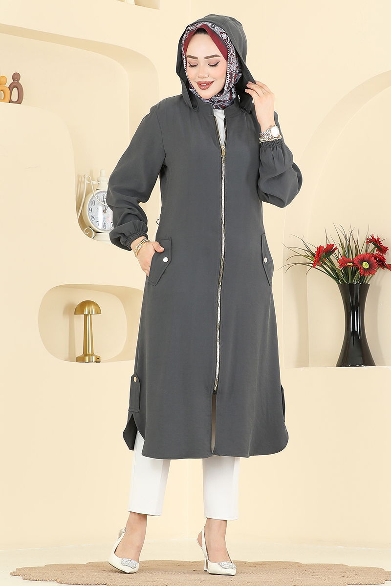 Product Feature : It is a new season hijab fashion product. The hood is detachable and can be used optionally. The product has a Hooded collar. Slach buttons are an accessory.. The product has a zipper at the From the front part. The product has an elastic waistband. The product has a pocket. The cuff is rubberized. There may be a tonal difference in the product due to concept photo shoots.