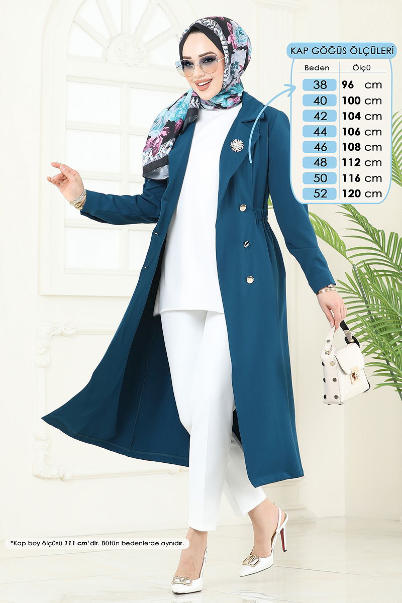 Product Feature : It is a new season hijab fashion product. The product has a Double-breasted collar. The product has From the front buttons. Unlined. Accessories are not included. Pocket available. Cuff buttons are active. There may be a tonal difference in the product due to concept photo shoots.