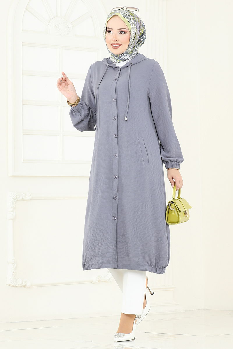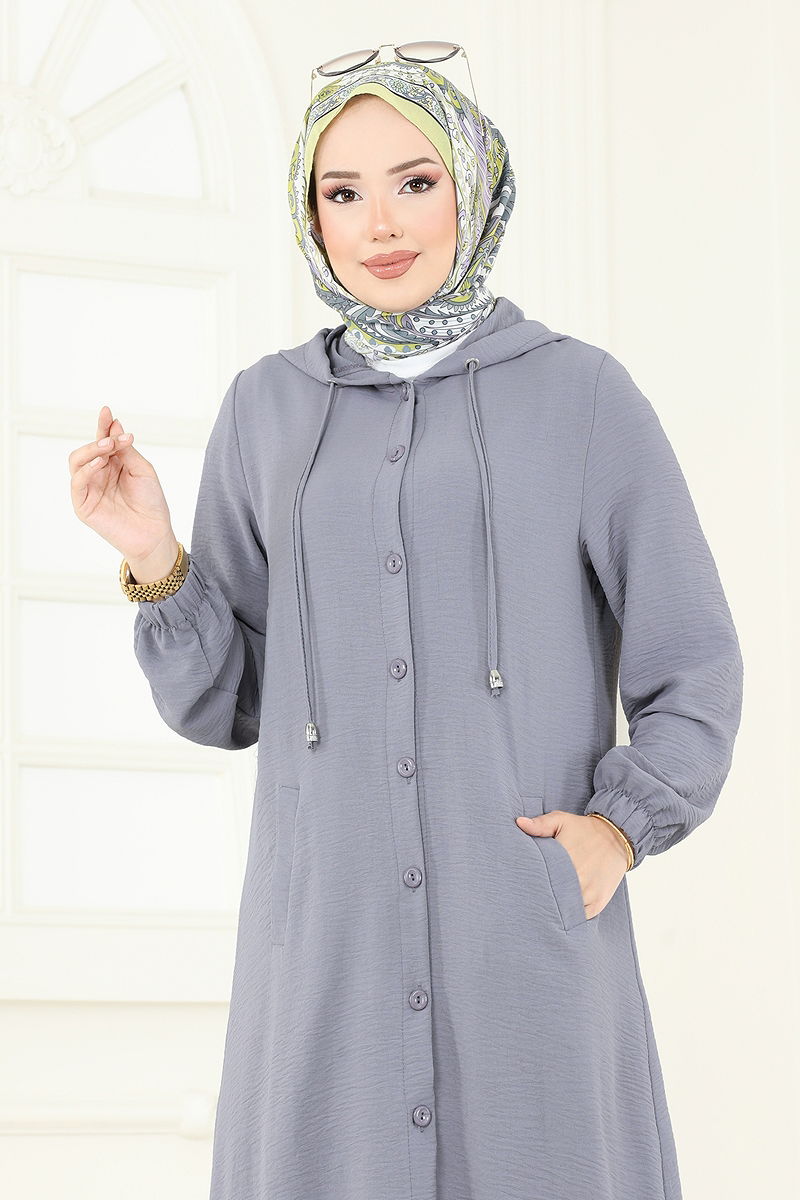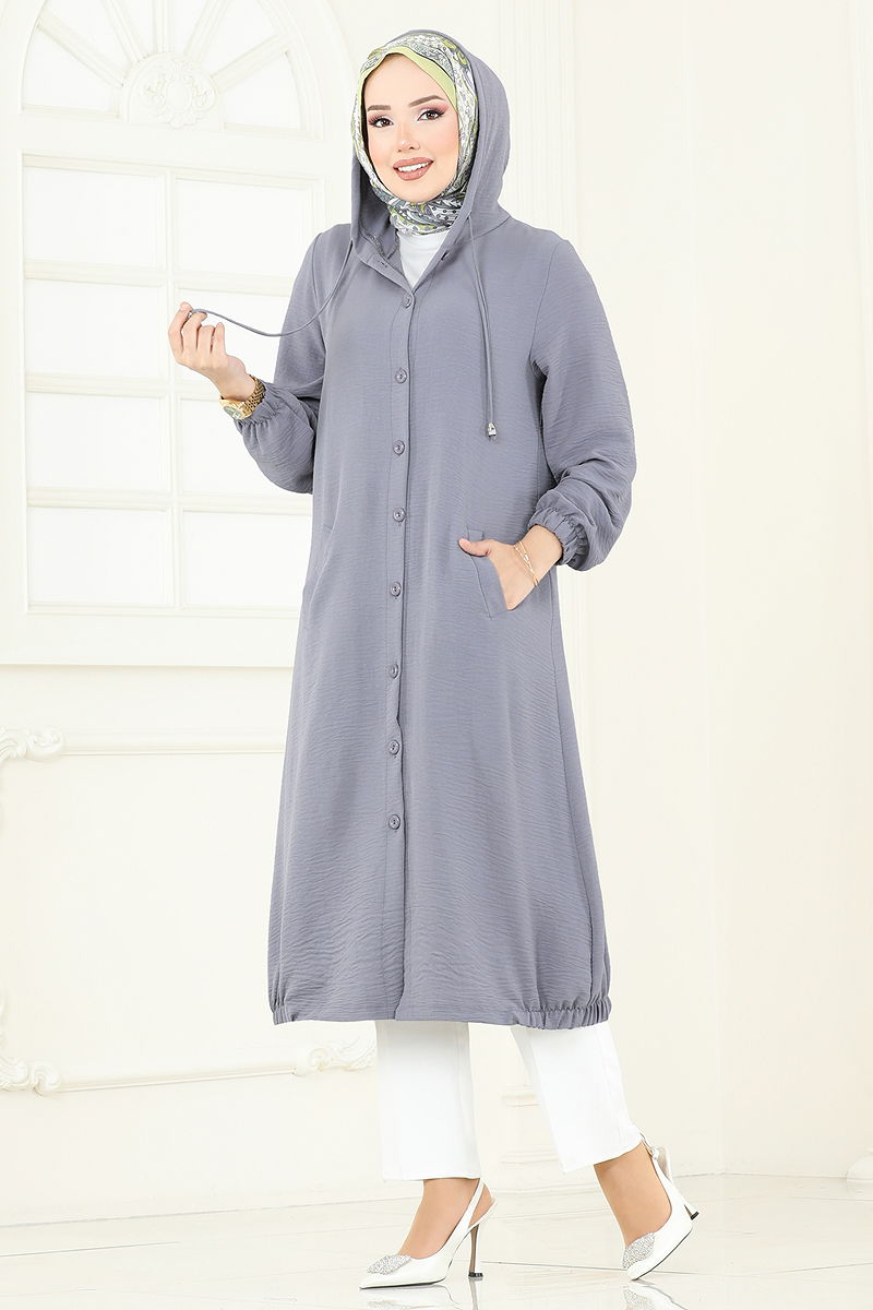 Product Feature : It is a new season hijab fashion product. The product has a Hooded collar. The product has From the front buttons. Unlined. The hood is sewn to the product. Pocket available. The cuff is rubberized. There may be a tonal difference in the product due to concept photo shoots.
