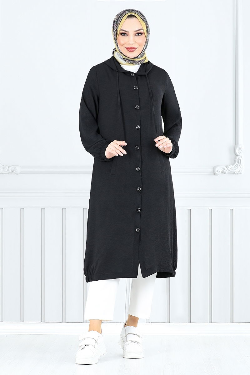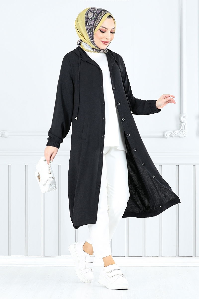 Product Feature : It is a new season hijab fashion product. The product has a Hooded collar. The product has From the front buttons. Unlined. The hood is sewn to the product. Pocket available. The cuff is rubberized. There may be a tonal difference in the product due to concept photo shoots.