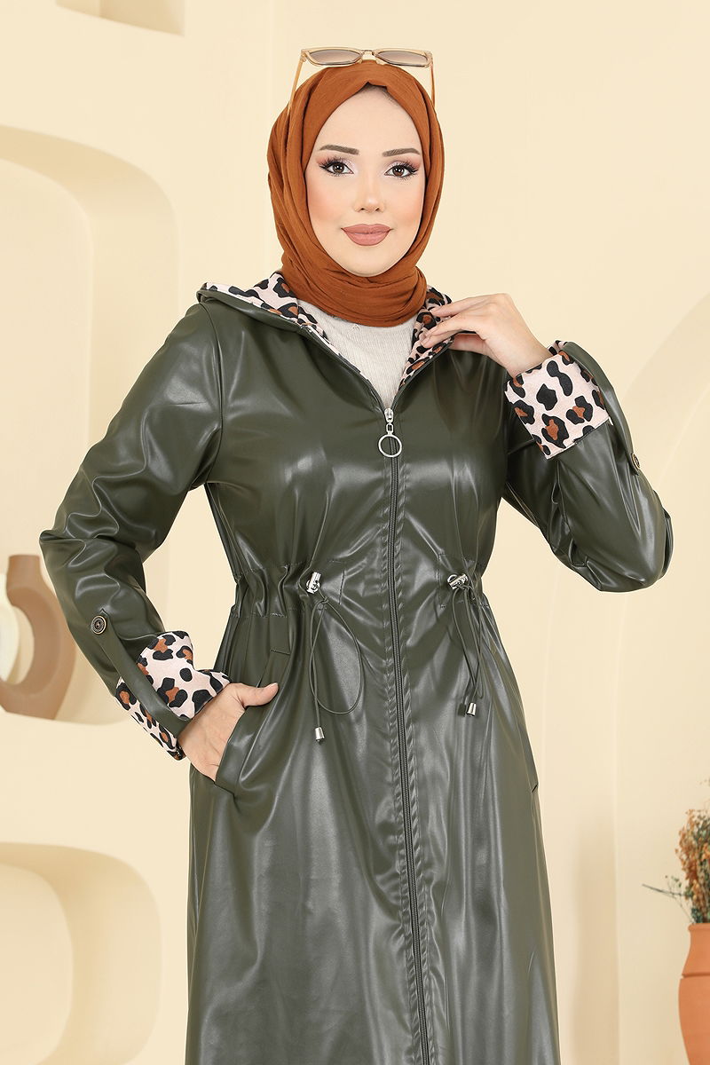 Product Feature : It is a new season hijab fashion product. It has a laced waist. The sleeve cuff fold detail is stitched. The product has a Hooded collar. Unlined. The product has a zipper at the From the front part. The hood is sewn to the product. Pocket available. There may be a tonal difference in the product due to concept photo shoots.