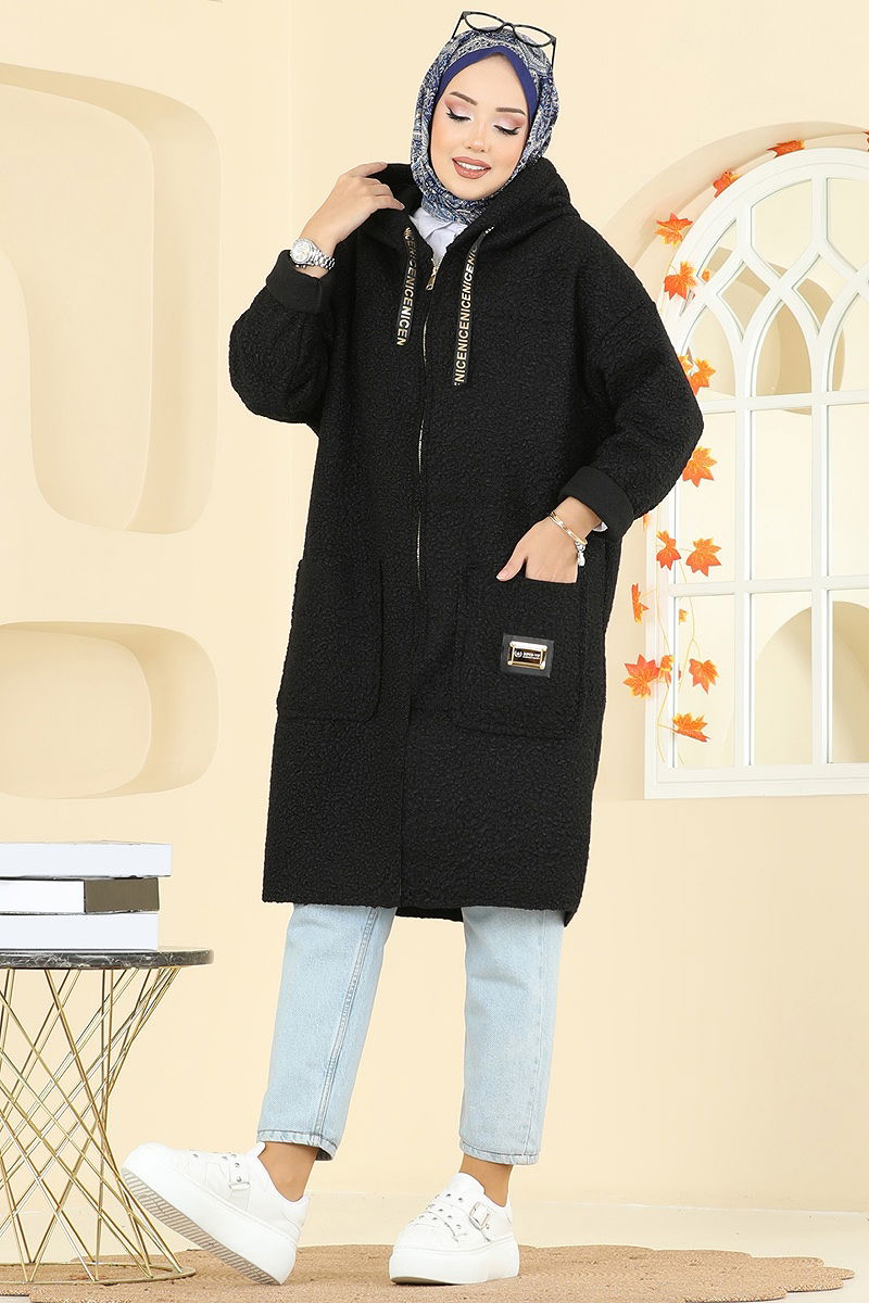 Product Feature : It is a new season hijab fashion product. The product has a Hooded collar. Unlined. The product has a zipper at the From the front part. The coat of arms detail is sewn. The product is lace-up. The hood is sewn to the product. Pocket available. There may be a tonal difference in the product due to concept photo shoots.