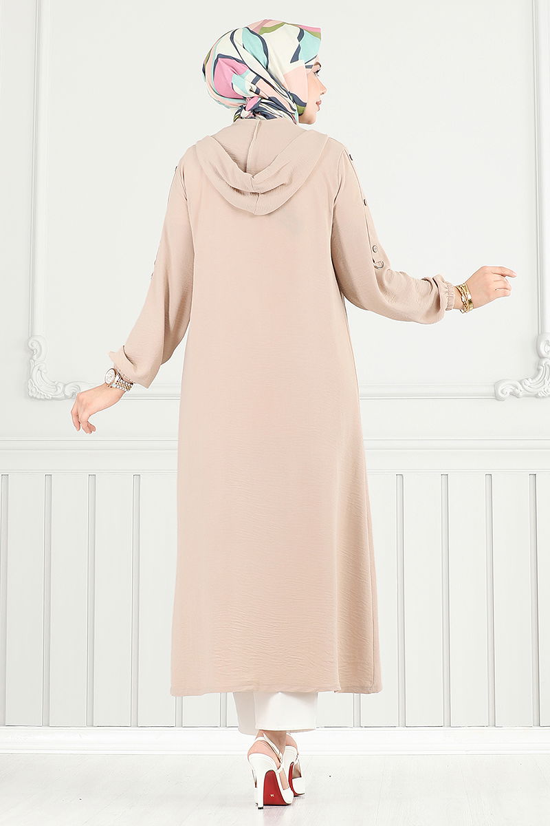 Product Feature : It is a new season hijab fashion product. The product has a Hooded collar. Unlined. The product has a zipper at the From the front part. The hood is sewn to the product. Buttons are accessories. Pocket available. The cuff is rubberized. There may be a tonal difference in the product due to concept photo shoots.