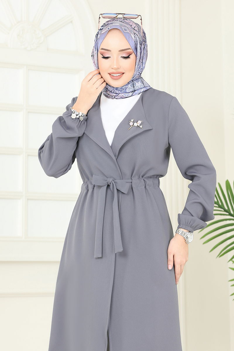 Product Feature : It is a new season hijab fashion product. It has a laced waist. The product has a Double-breasted collar. It has a slash.. Unlined. Accessories are not included. The cuff is rubberized. There may be a tonal difference in the product due to concept photo shoots.