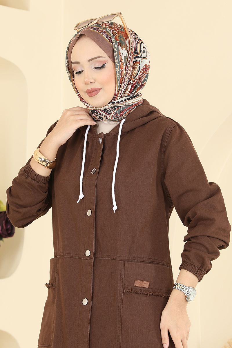 Product Feature : It is a new season hijab fashion product. The neck drawstring is active. The product has a Hooded collar. The product has From the front buttons. It's unlined. It's see-through.. The product has a stitched waistband. The coat of arms detail is sewn. Pocket available. The cuff is rubberized. There may be a tonal difference in the product due to concept photo shoots.