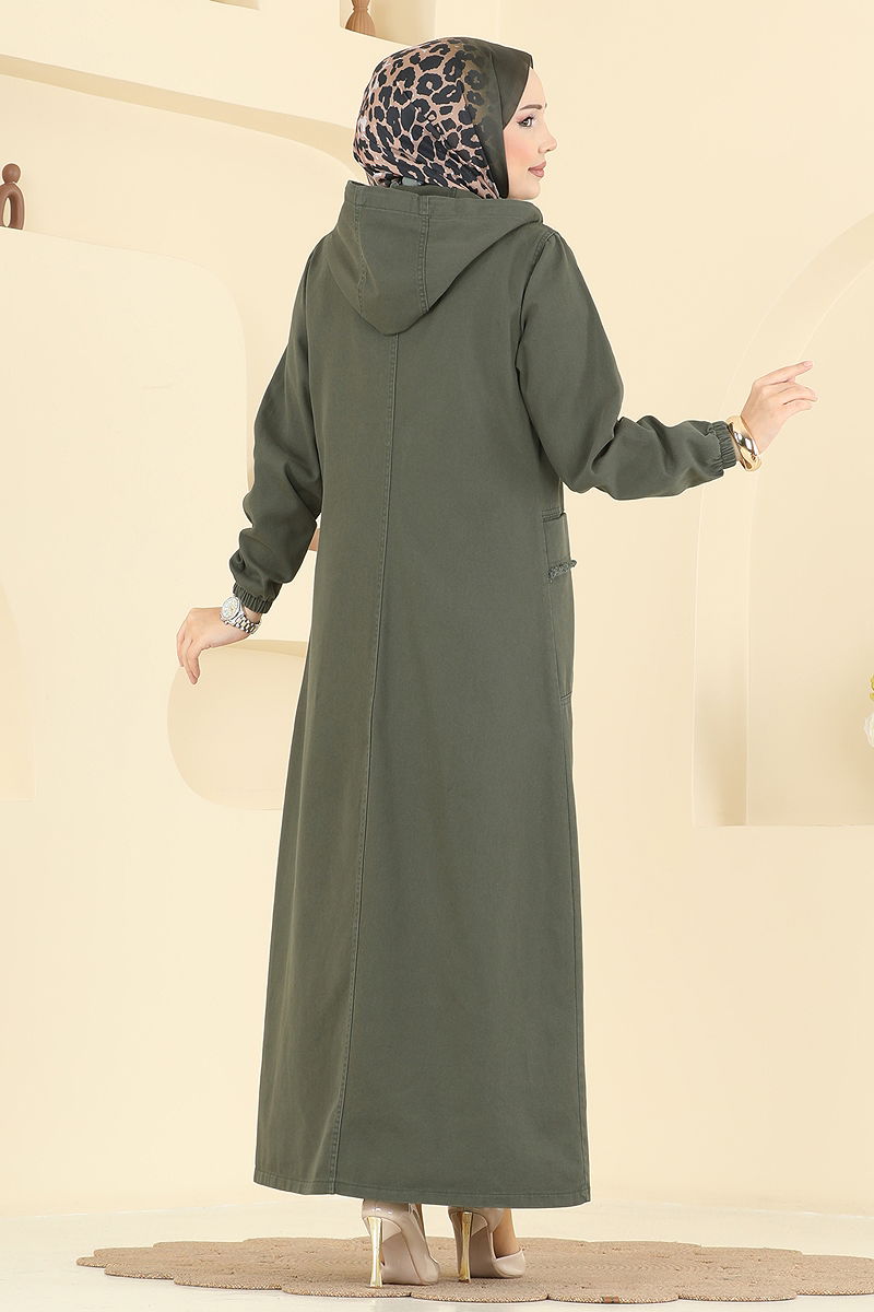 Product Feature : It is a new season hijab fashion product. The neck drawstring is active. The product has a Hooded collar. The product has From the front buttons. It's unlined. It's see-through.. The product has a stitched waistband. The coat of arms detail is sewn. Pocket available. The cuff is rubberized. There may be a tonal difference in the product due to concept photo shoots.